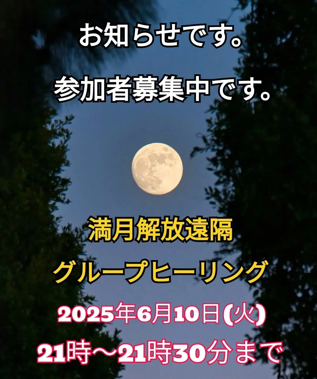 満月解放遠隔グループヒーリングとスピリチュアルトーキングサークルのご案内です。