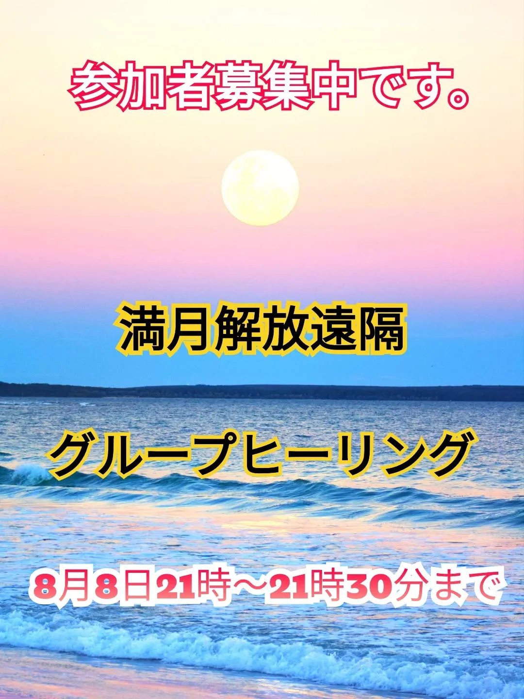 8月8日(金)の21時から21時30分まで満月解放遠隔グループヒーリングが開催されます。