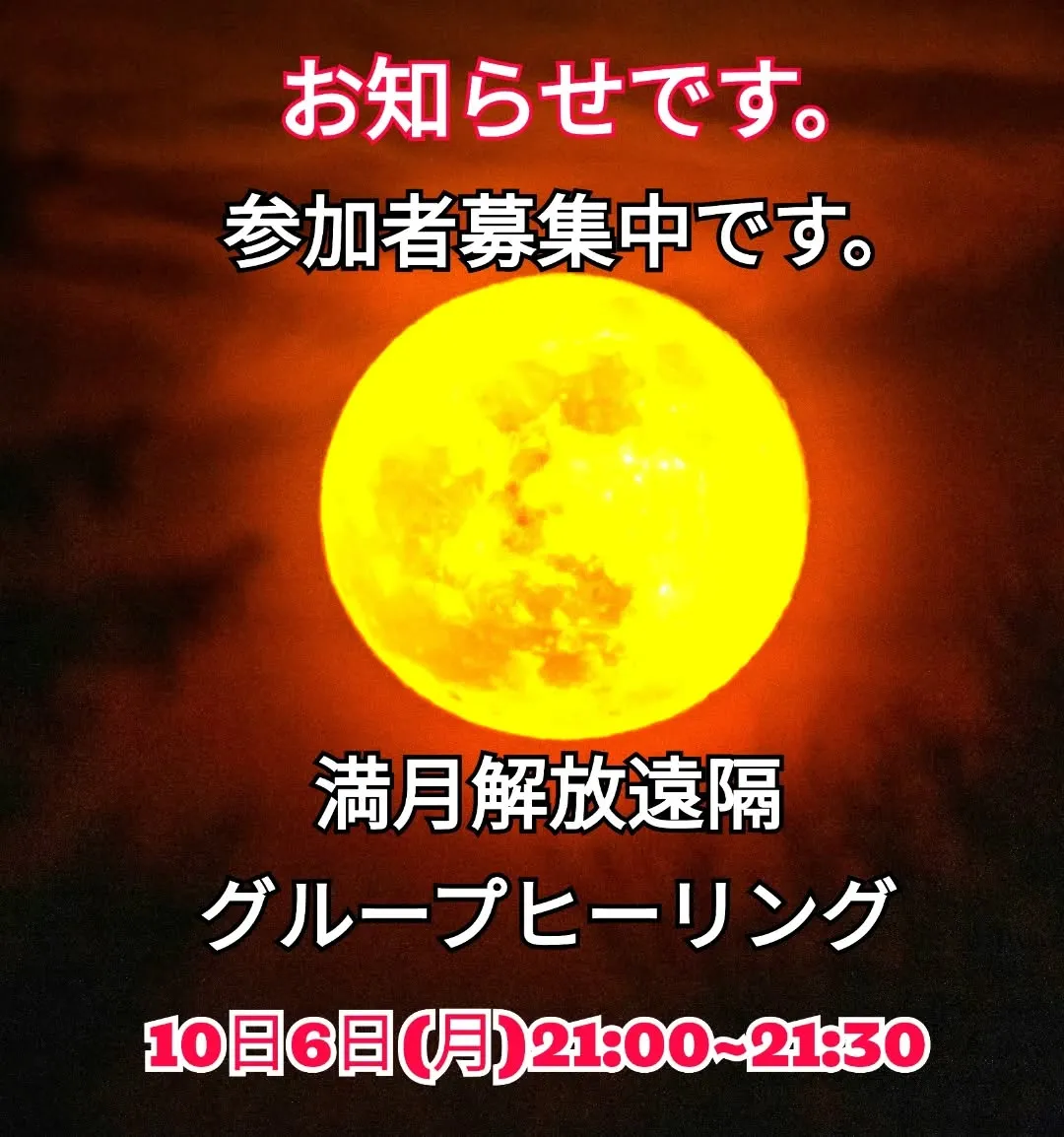 10月6日(月)の21時から21時30分まで満月解放遠隔グループヒーリングが開催されます。
